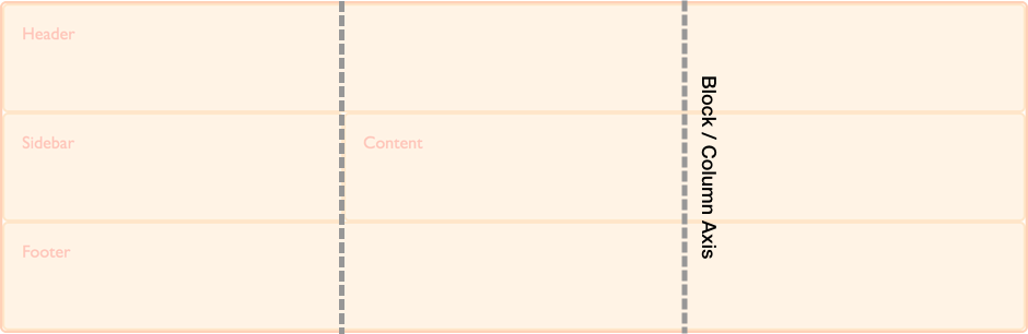 Lorsqu'on manipule une grille, on dispose de deux axes sur lesquels aligner les objets. L'axe de bloc et l'axe en ligne. L'axe de bloc est l'axe selon lequel les blocs sont disposés quand on a une disposition en bloc (block layout). Par exemple, si on a deux paragraphes sur une page, par défaut, ils s'affichent l'un en dessous de l'autre.