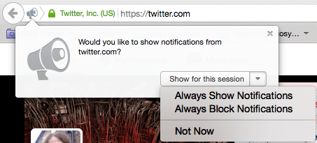 Здесь пользователь может выбрать разрешить уведомления от источника, заблокировать их или решить позже. Как только выбор будет сделан, для текущей сессии будут установлены настройки.
